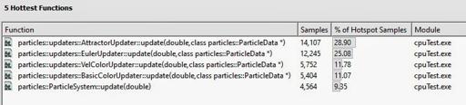 Particle System is only a small subsystem usually found in a game engine. In our system computation happens on the CPU side only so we do not have to measure GPU/CPU utilization in this case. For the sake of simplicity, we can now focus on the CPU part only.